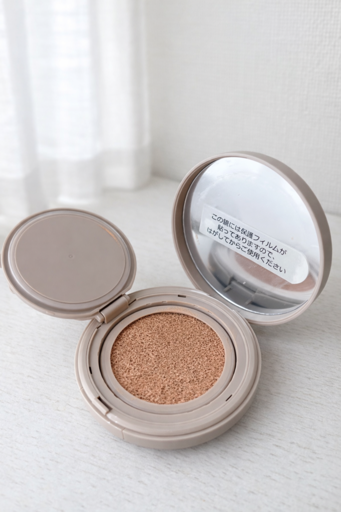 ただし、&beのクッションファンデ(ツヤタイプ)と比べるとツヤ感は控えめで、どちらかといえばセミマット寄りに感じました。