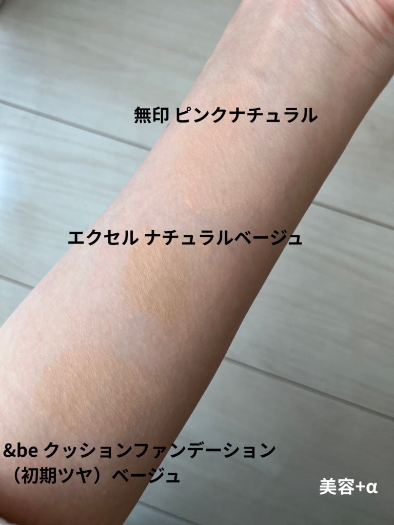エクセルや&beのクッションファンデとの色とも比較してみたので、参考にしてみてくださいね。
